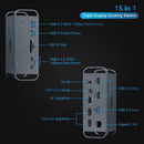 NÖRDIC 1 to 15 USB-C docking station allows you to expand a USB-C port in your computer to 2xHDMI 2.0, 1x DP 1.2, 1xUSB-C 3.2 Gen2, 1xUSB-C Power delivery 65W, 1xUSB-C 3.0, 2xUSB- A 3.2 Gen2, 1xUSB-A 3.0, 2xUSB-A 2.0, 1xRJ45, 1xDC in, 1xSD card input, 1xTF card input.