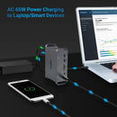 The three USB 3.2 Gen2 ports support data transfer speeds up to 10Gbps, the USB 3.0 ports support speeds up to 5Gbps and the USB 2.0 ports support speeds up to 480Mbps. Use the 65W DC in port to power both the docking station and your computer via the USB-C PD port and connect wired internet via the RJ45 port.