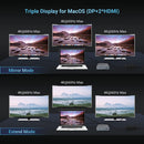 The docking station supports up to three external monitors, two via HDMI and one via Displayport. The resolution for one monitor is max 4k60hz, for two it is 4k30hz and for three it is 2k60hz. The docking station also supports MST, which means that it can both mirror or extend the external monitors. Extended only works on Windows.