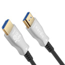 Active optical cables with Silicon Line Chipset do not require an external power source to convert and transmit electrical signals as optical signals and offer many advantages over conventional copper connections. They are much lighter and more flexible than copper for high bandwidth applications, have a longer transmission distance and no susceptibility to electromagnetic interference (EMI). The fiber cable has the same standard HDMI connectors and this means that you can connect it like a regular HDMI cable to your TV and PC or other devices. In order to meet certain specifications such as EDID and HDCP, the cable is a hybrid of OM3 Multimode 4-conductor fiber and 7-conductor copper cable.