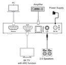 This HDMI eARC/ARC extractor allows you to connect and extract audio from an HDMI source to HDMI, optical S/PDIF or 3.5mm AUX. The extractor supports resolutions up to 8K@60Hz 4:2:0 12bit, 4K@120Hz 4:4:4 12bit and is certified by the 8K association. Note that HDMI 2.1 cables are required for the highest resolutions. Activate the ARC function with a simple push of a button on the extractor. Also supports HDCP 2.3 and is backward compatible with previous versions. Maximum bandwidth 48Gbps and data rate 41.92Gbps. Supports color format RGB Y'CbCr 4:4:4, 4:2:2, 4:2:0 and color depth up to 16bpc. The sound is extracted either via optical or analogue and the extractor supports 2 channels, 5.1 and 7.1 channel sound (7.1 only via HDMI output). Support for the latest audio formats Dolby Atmos, DTS Master, Dolby TrueHD, Dolby Digital Plus and more. With support for HDMI CEC, you can control the volume of input devices with the TV remote control, audio format is also set on the HDMI source.