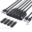 NÖRDIC 4 to 4 USB-A 3.0 5Gbps Switch allows you to connect four computers that share four USB-A 3.0 ports. The computers are connected to the switch via USB-A and it is then possible to choose which computer is active using buttons on the switch. The USB-A 3.0 ports on the switch support data transfer rates up to 5Gbps and can be used to connect a mouse, keyboard or other USB devices. The product is powered by a 5V 2A power supply (not included) and requires no drivers.