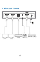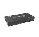 This HDMI splitter allows you to connect an HDMI source and easily switch between up to two HDMI displays, and in addition also extract the sound via optical S/PDIF or 3.5mm AUX. The splitter supports resolutions up to 4K@60Hz 4:4:4. Note that HDMI 2.0 cables are required for the highest resolutions. Also supports HDCP 2.1 and is backward compatible with previous versions. Maximum bandwidth 18 Gbps and data rate 14.4 Gbps. Supports color format RGB Y'CbCr 4:4:4, 4:2:2, 4:2:0 and color depth up to 12bpc. Supports downscaling of video signals from 4K to 1080p.