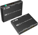 NÖRDIC Displayport splitter allows you to connect a Displayport video source to two screens. The splitter has an HDMI output and a Displayport output for connection to screens.