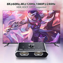 NÖRDIC SGM-215 can work both as 1 to 2 splitter or 2 to 1 switch. As a splitter, you can connect an HDMI video source to two monitors, TVs or projectors and the image is displayed on one at a time. Two monitors cannot display the image at the same time. As a switch, you can connect two HDMI video sources such as Blu-ray, PC, Xbox, PS4/PS5 and more to a monitor or TV. Switching between video sources is done with the press of a button. For the switch to work in 8K, it is necessary that the video sources, TV/monitor and cables can handle 8K60Hz.